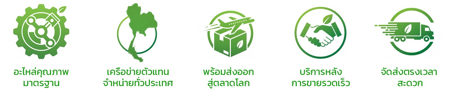 รถแทรกเตอร์ รถไถ จอบหมุน ระบบเกียร์ HST อะไหล่ที่ใช้เทคโนโลยีการผลิตขั้นสูง เช่น ลูกสูบ ก้านสูบ เสื้อเกียร์ วาล์วไอดี วาล์วไอเสีย ชุดซ่อมปั๊มเชื้อเพลิง เทอร์โบชาร์จเจอร์ ชิ้นไฮดรอลิคและอื่นๆ ผลิตภัณฑ์ของบริษัทจัดจำหน่ายภายในประเทศและส่งออกไปหลายประเทศทั่วโลก เช่น อิหร่าน พม่า โคลัมเบีย ลาว ปานามา โดมินิกัน